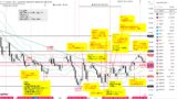 - 週足: ボリンジャーバンドスクイーズし、トレンドラインまで大陰線で下落。直近の流れはレンジ。