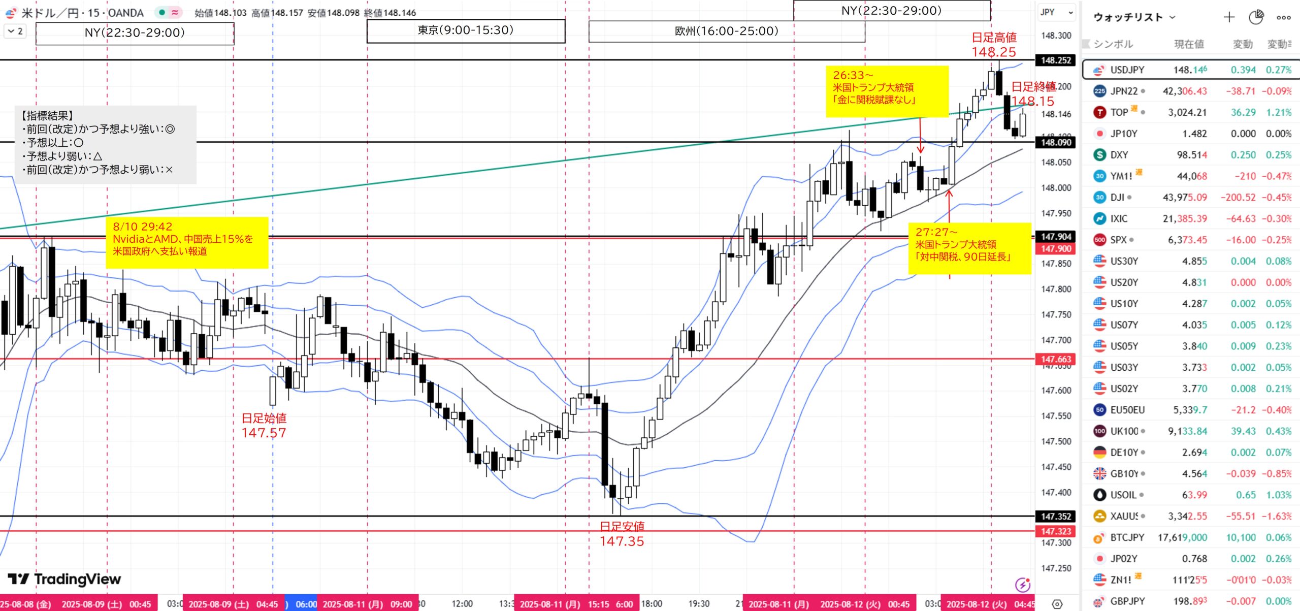 (C)1H足レンジ安値147.663をダウ下落→目標1H足押し安値147.323
