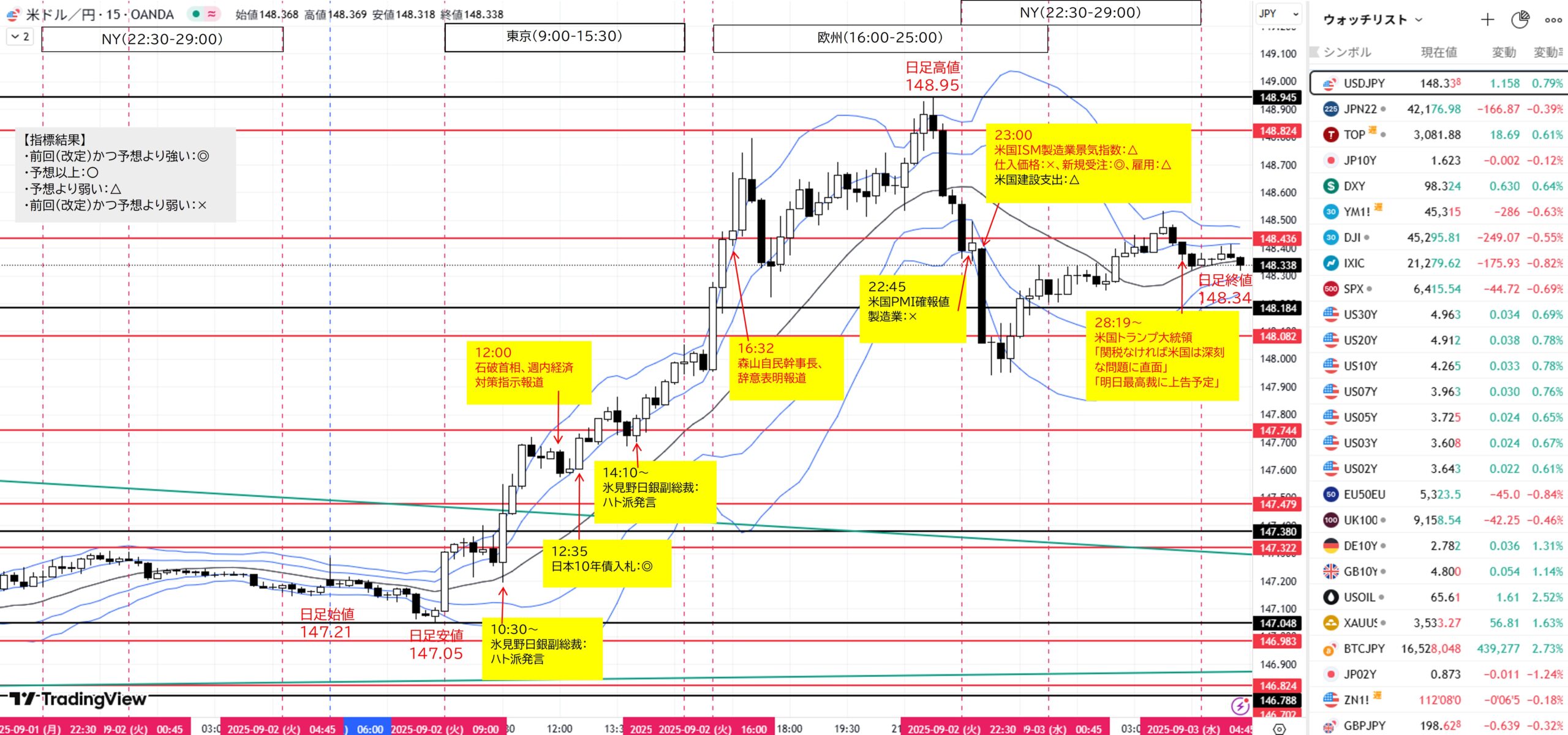 (C)4H足レンジ安値146.824をダウ下落→目標4H足押し安値146.383