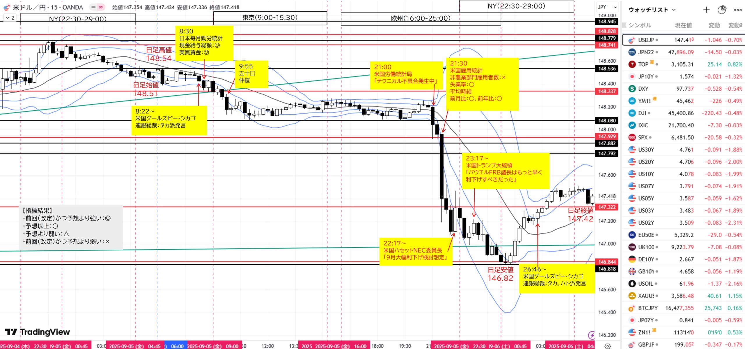 非農業部門雇用者数(NFP):前回7.3万人(改定7.9)、予想7.5万人、結果2.2万人(×)