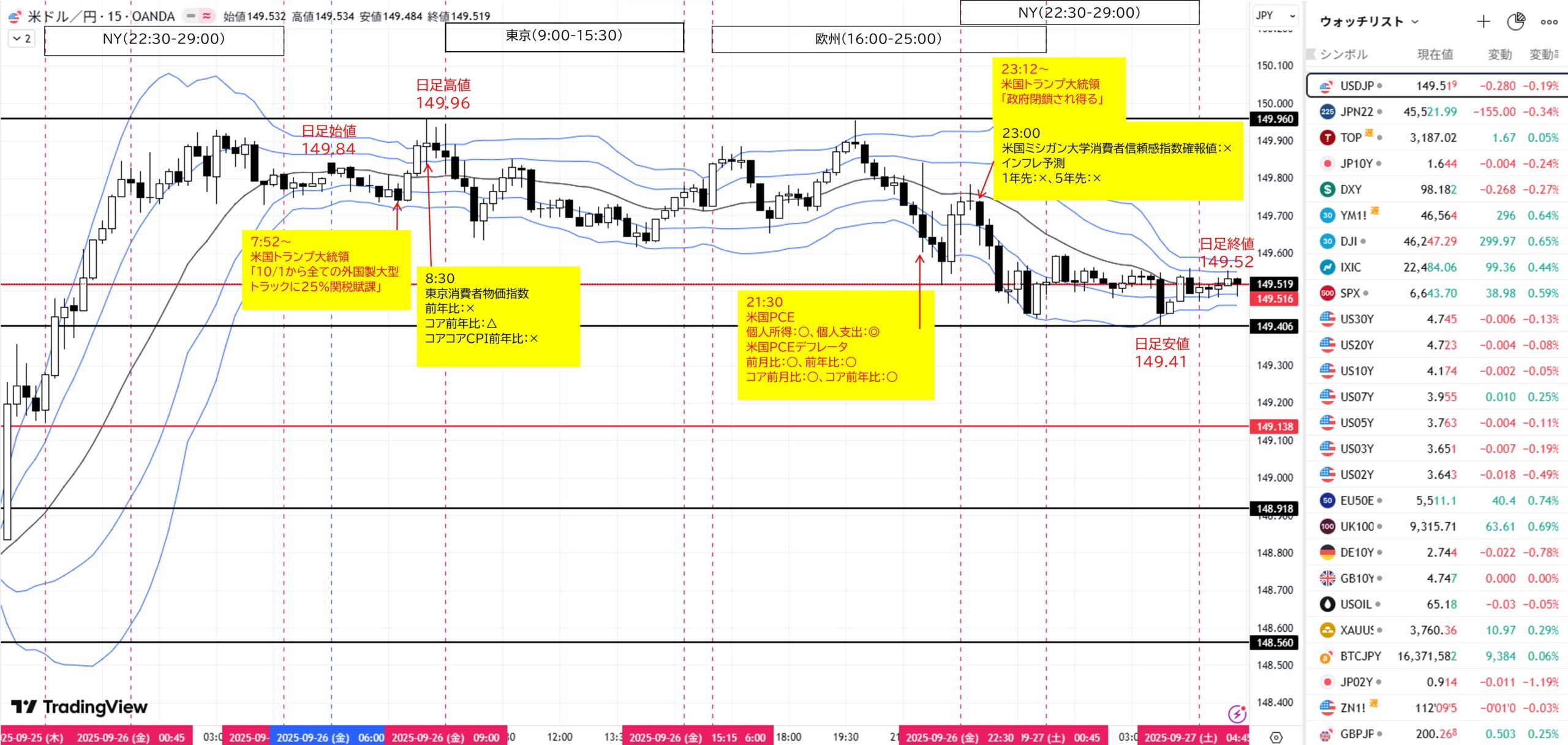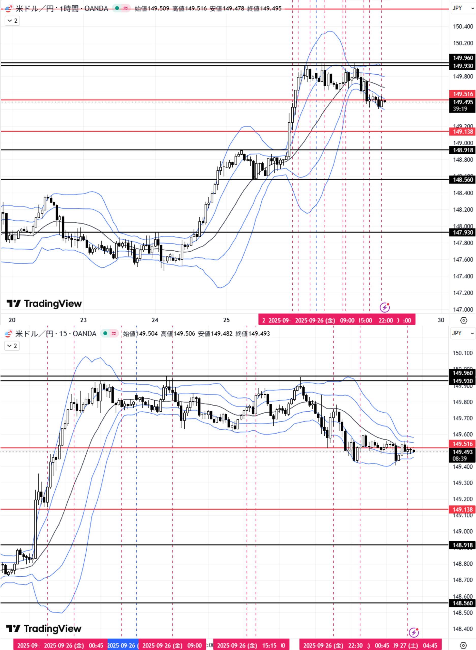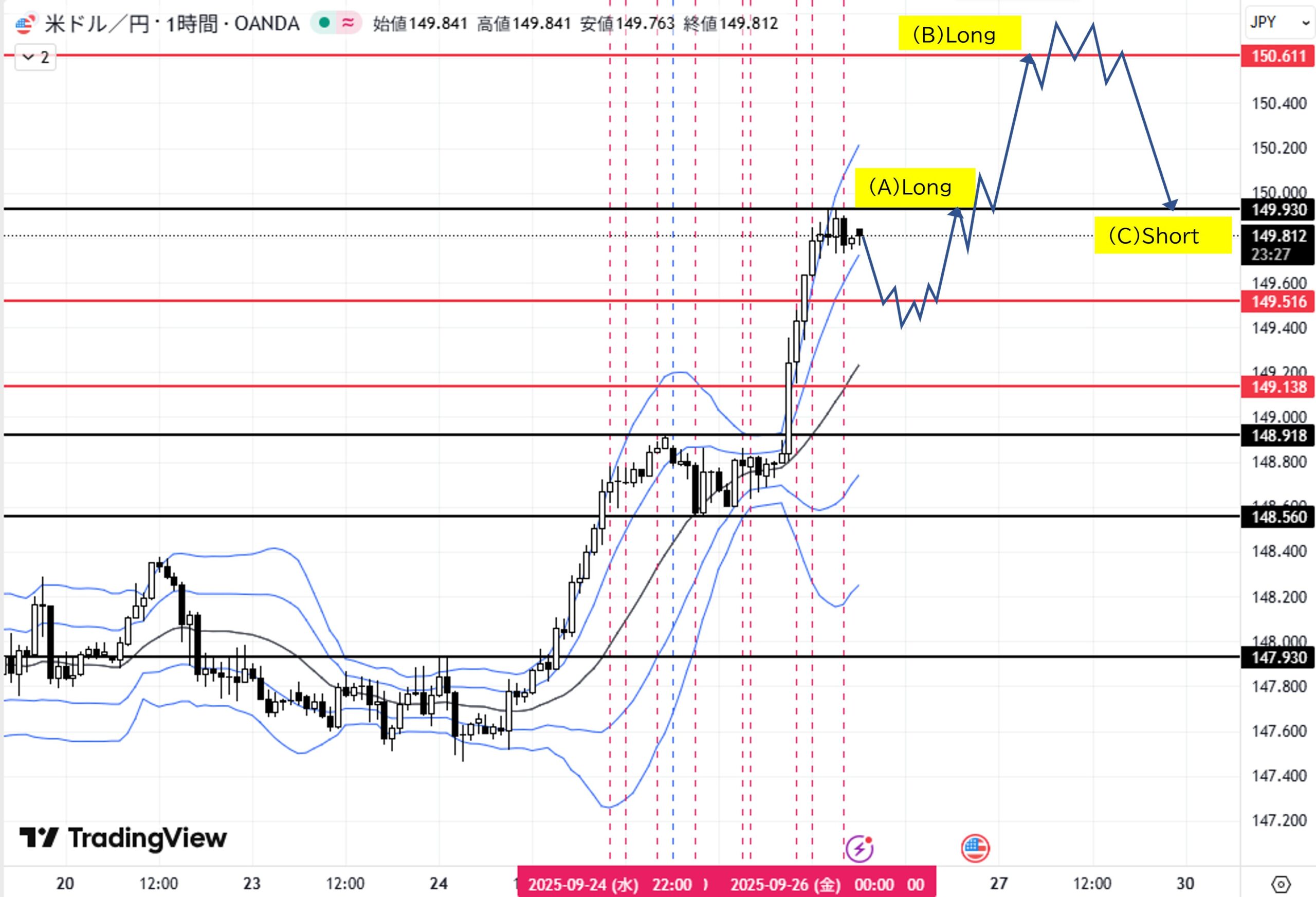 (A)1H足レンジ高値149.516付近へ下落→転換上昇→目標日足高値149.930
