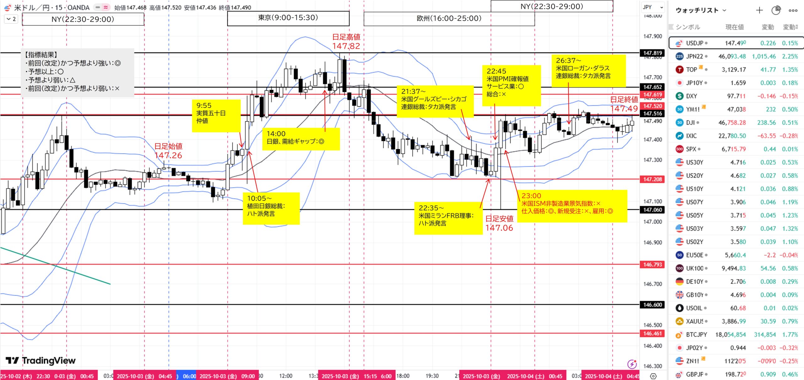 2025年10月3日(金)ドル円戦略と結果