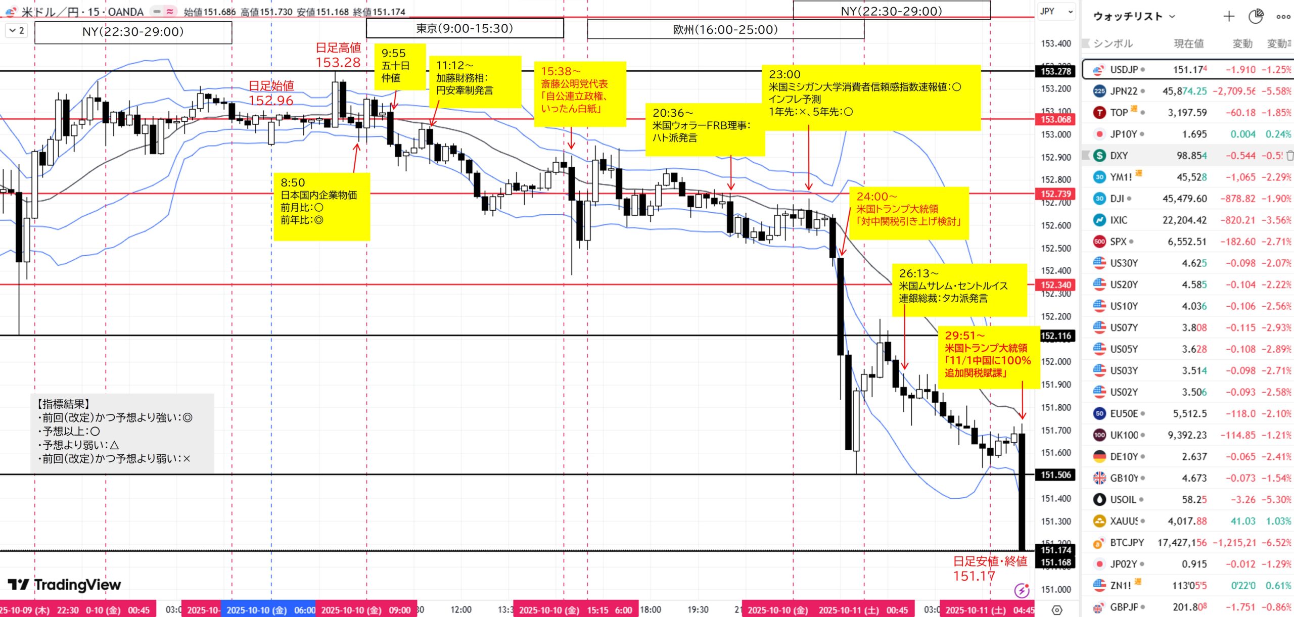 ・米国トランプ大統領「対中関税引き上げ検討」「11/1中国に100%追加関税賦課」→米中貿易戦争激化リスクオフ