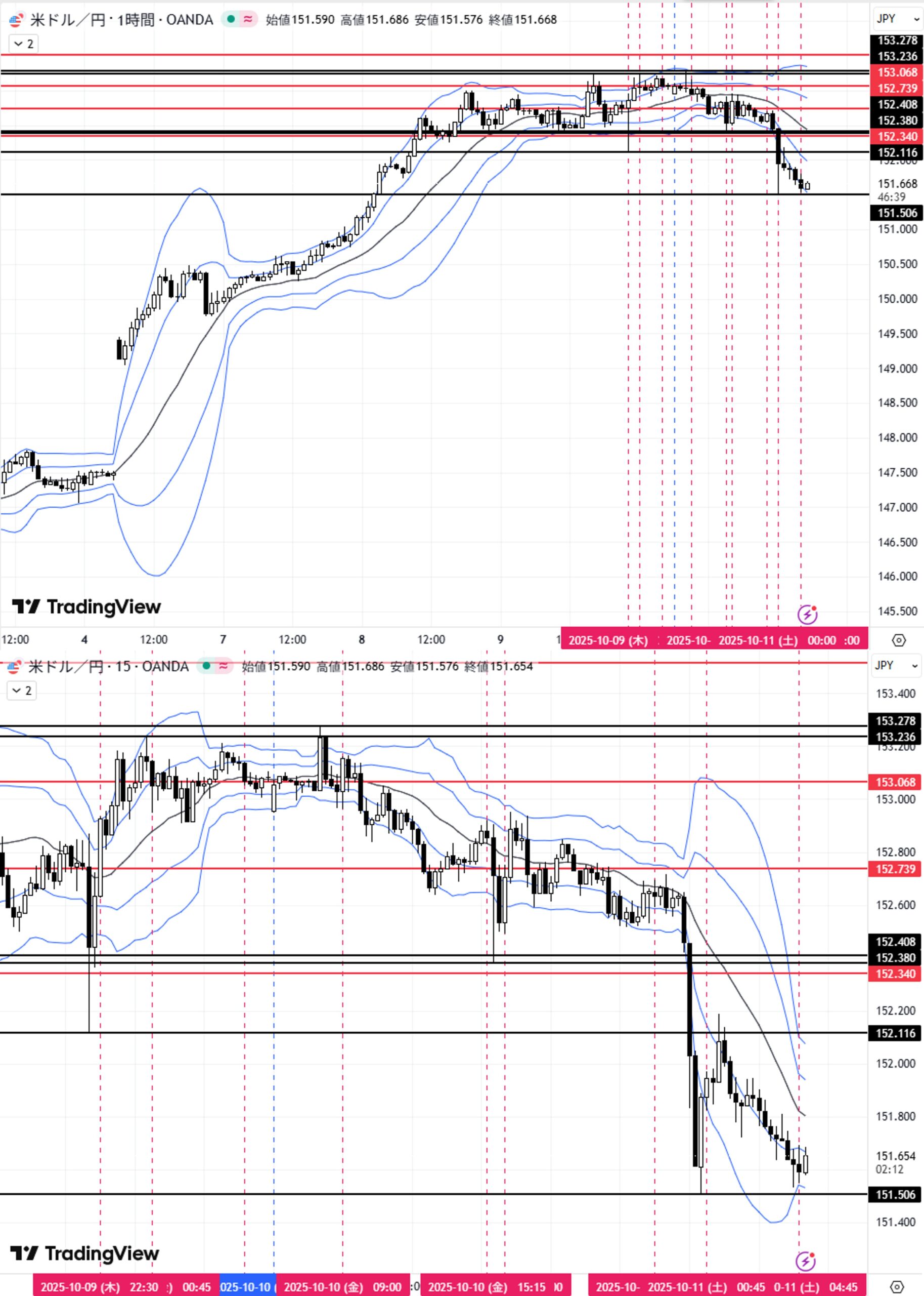 • 週足:10/6週、陽線形成中。上昇トレンド。戻り高値付近