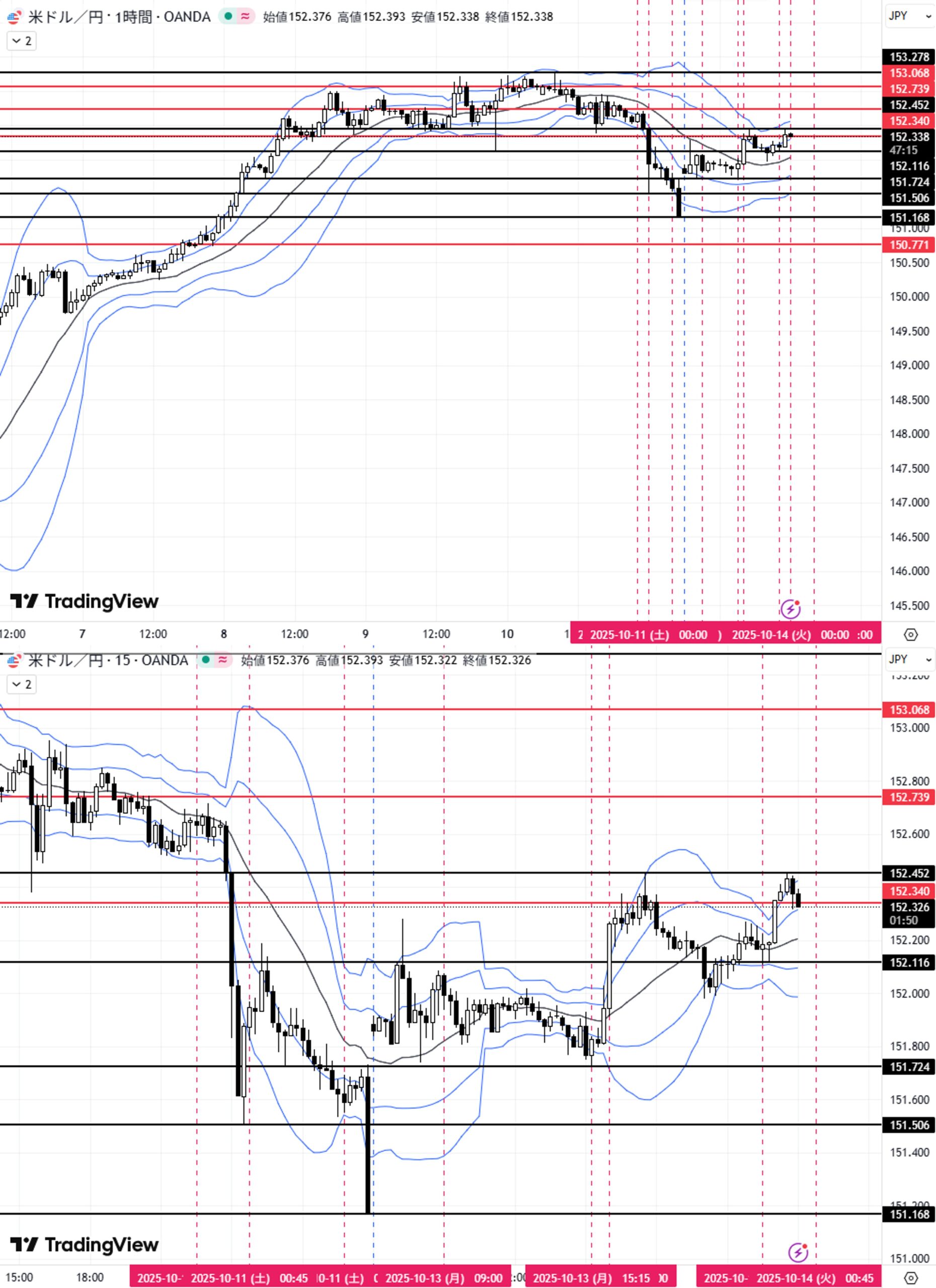 - 週足:10/6週、陽線確定。上昇トレンド。戻り高値付近