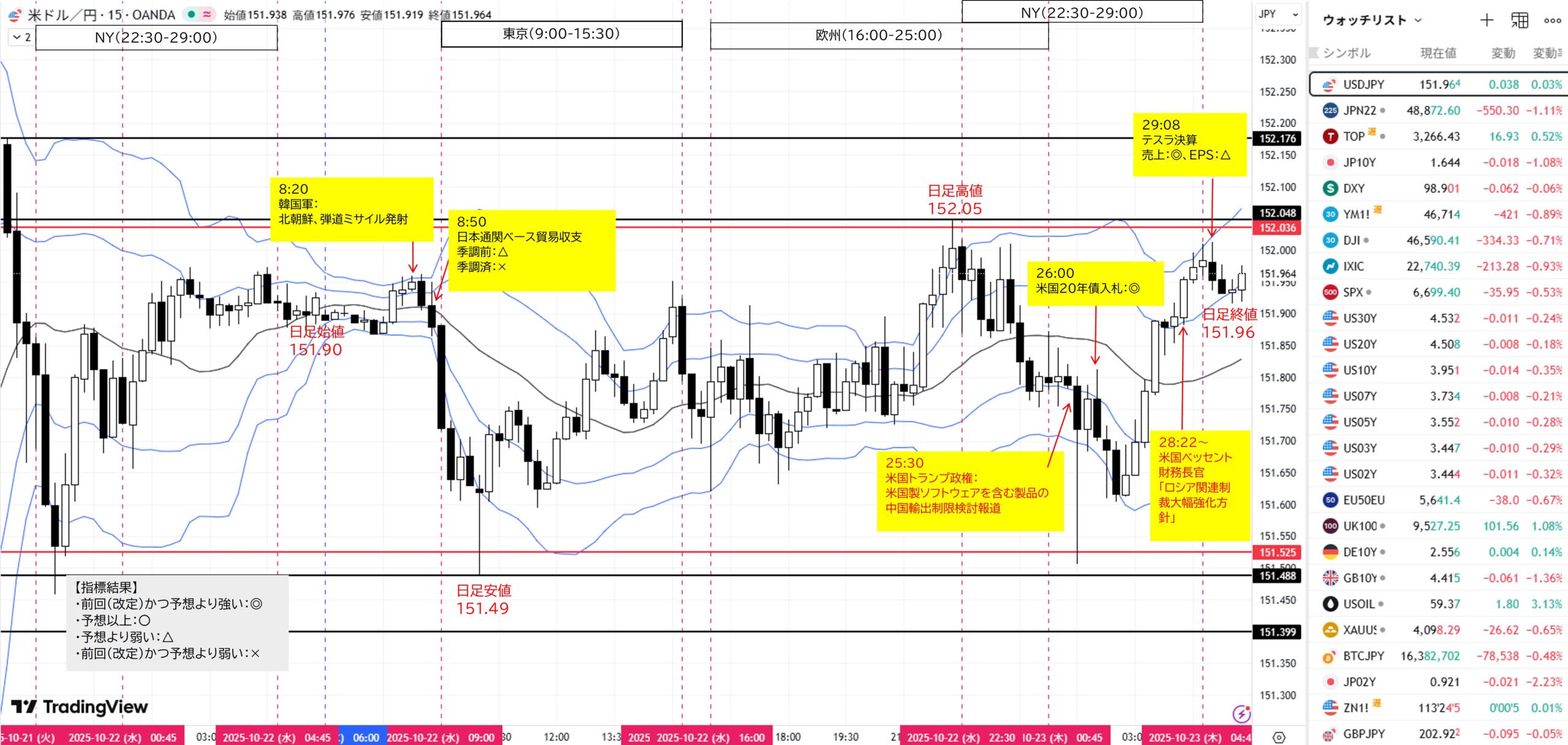 • 日足:10/21陽線。レンジ。BB+1σ付近