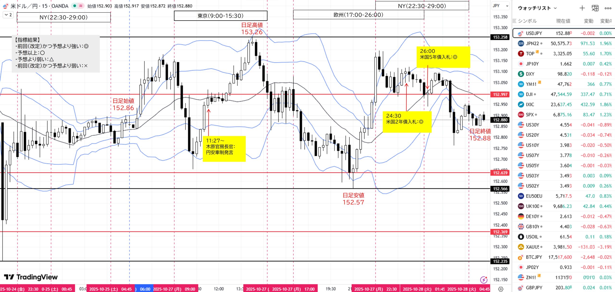 (B)1H足レンジ安値152.677をダウ下落→目標日足安値152.235