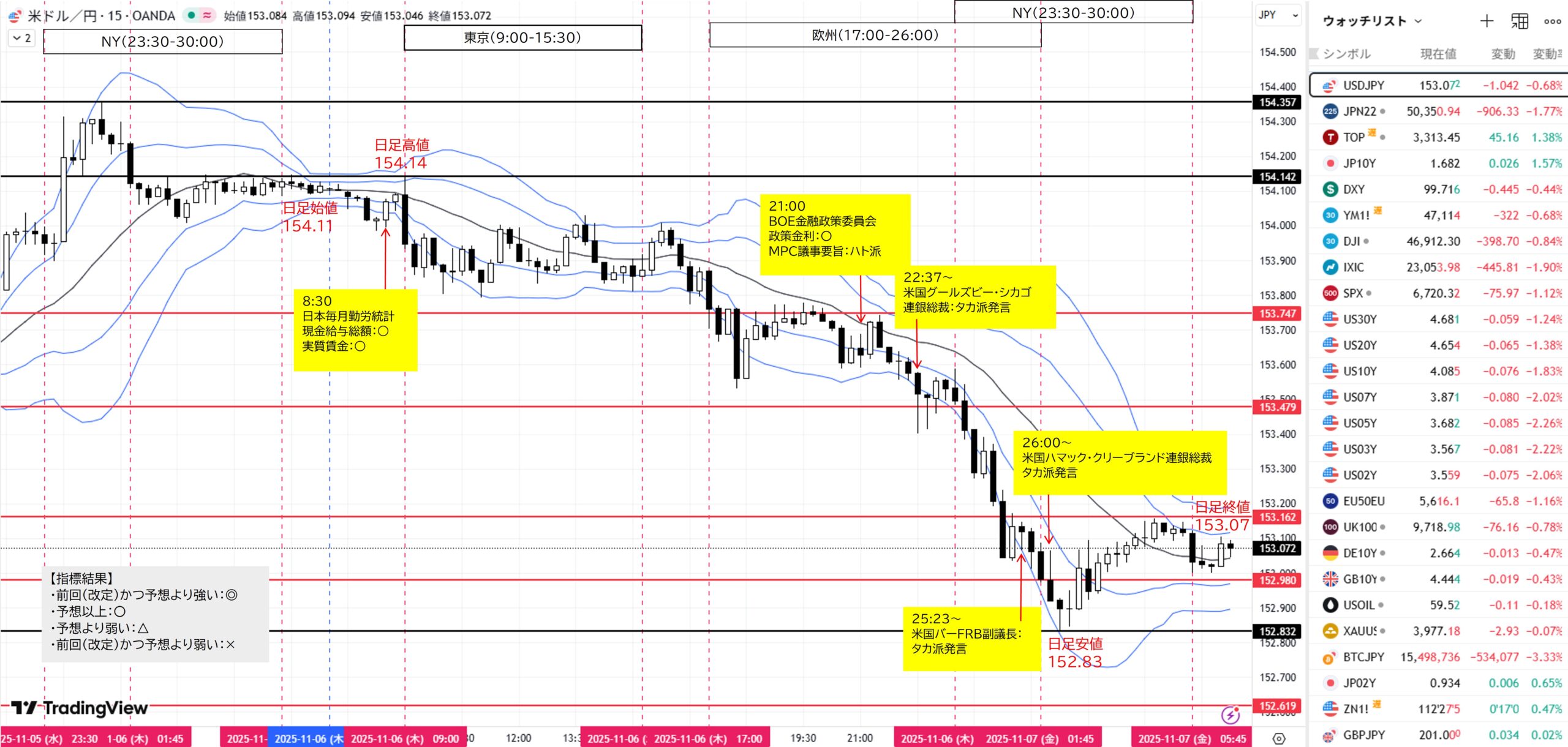 (B) (A)後、日足高値154.357をダウ上昇→目標日足戻り高値ヒゲ先154.804