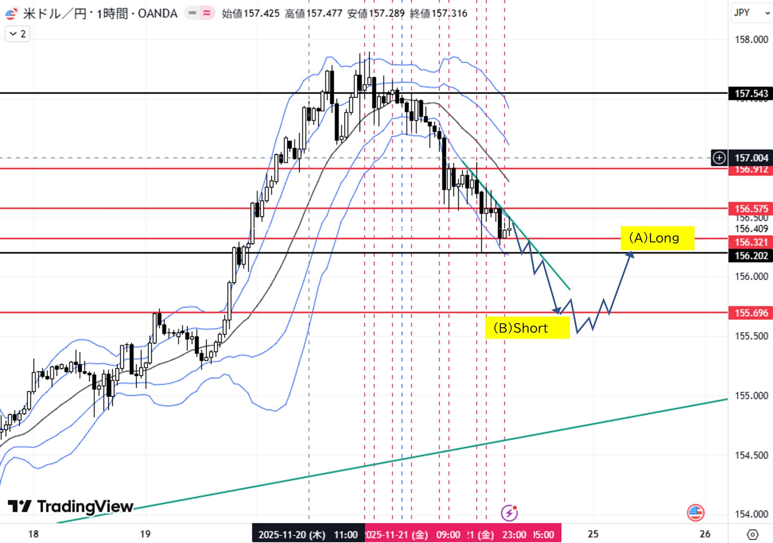 (B)日足安値156.202をダウ下落→目標4H足ダウ高値155.696
