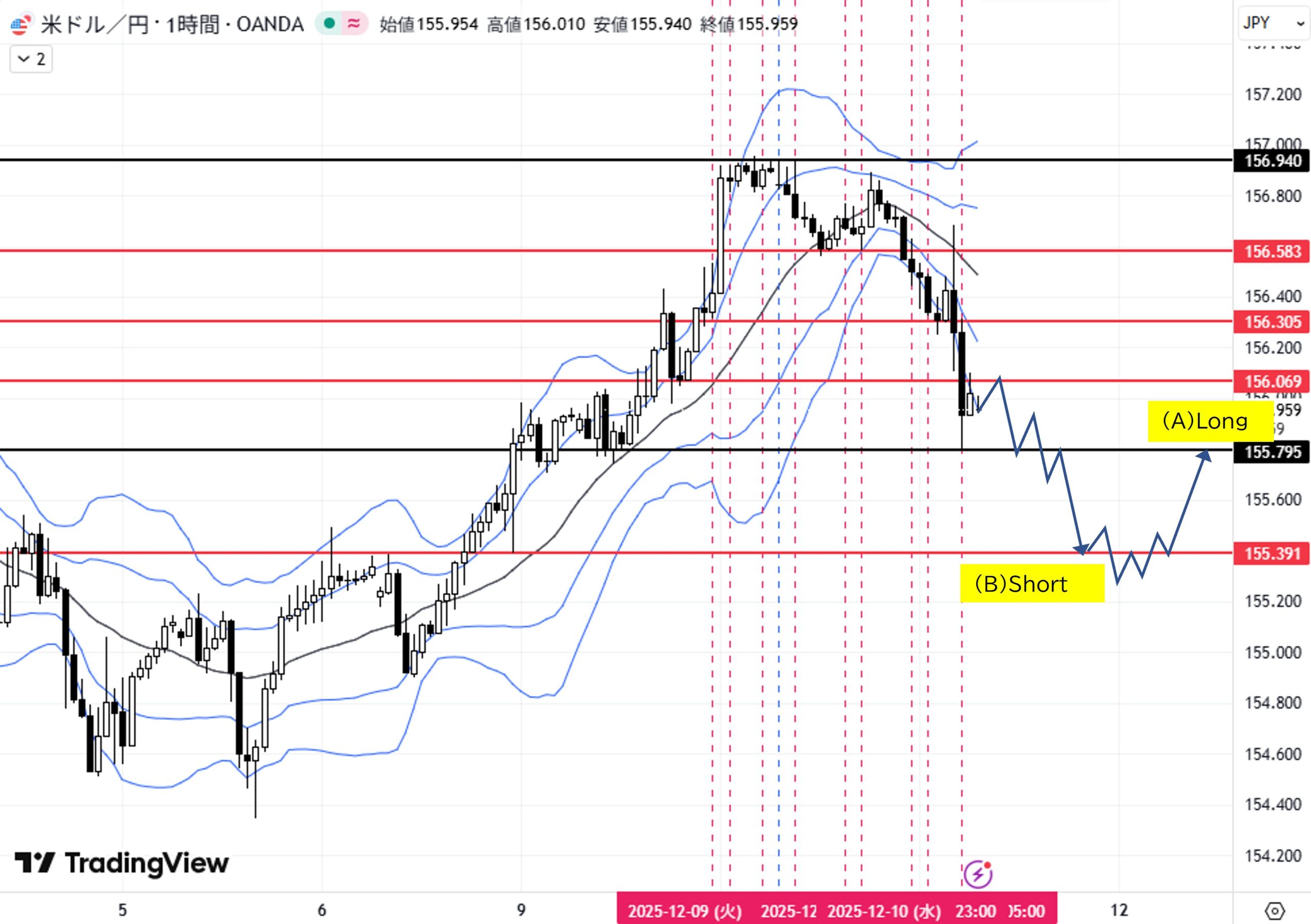 (A)4H足押し安値155.391付近へ下落→転換上昇→目標4H足押し安値155.795