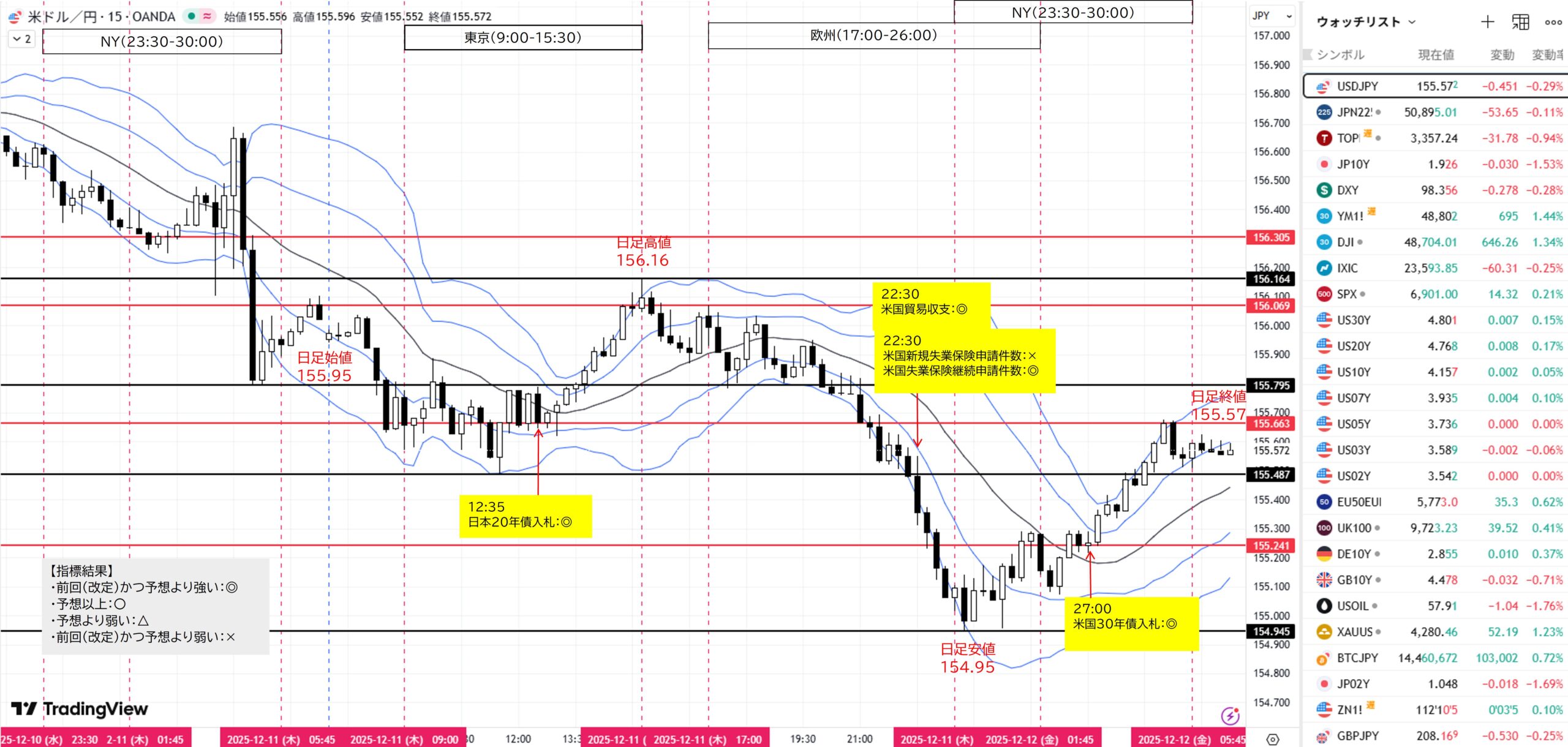 - 週足:12/8週、陽線形成中。上昇トレンド。BB+2σ付近