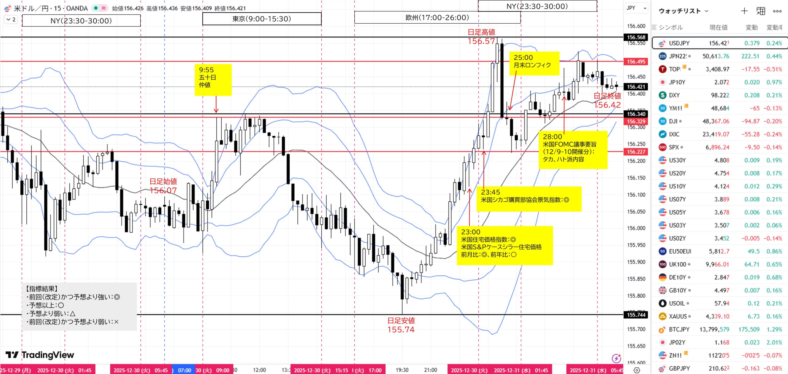 - 日足:12/29陰線。レンジ