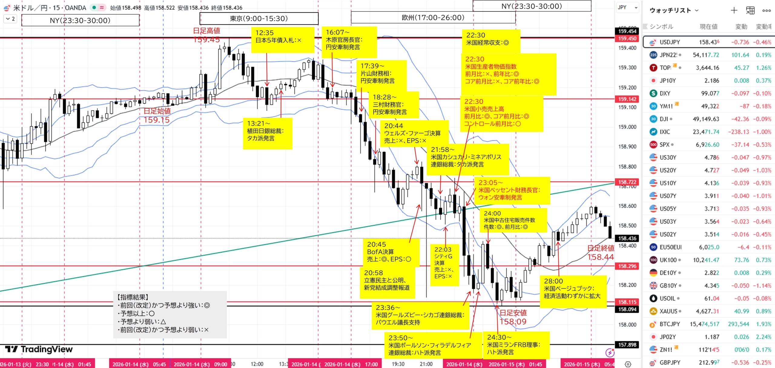 (B)1H足レンジ高値159.169をダウ上昇→目標日足戻り高値ヒゲ先159.450