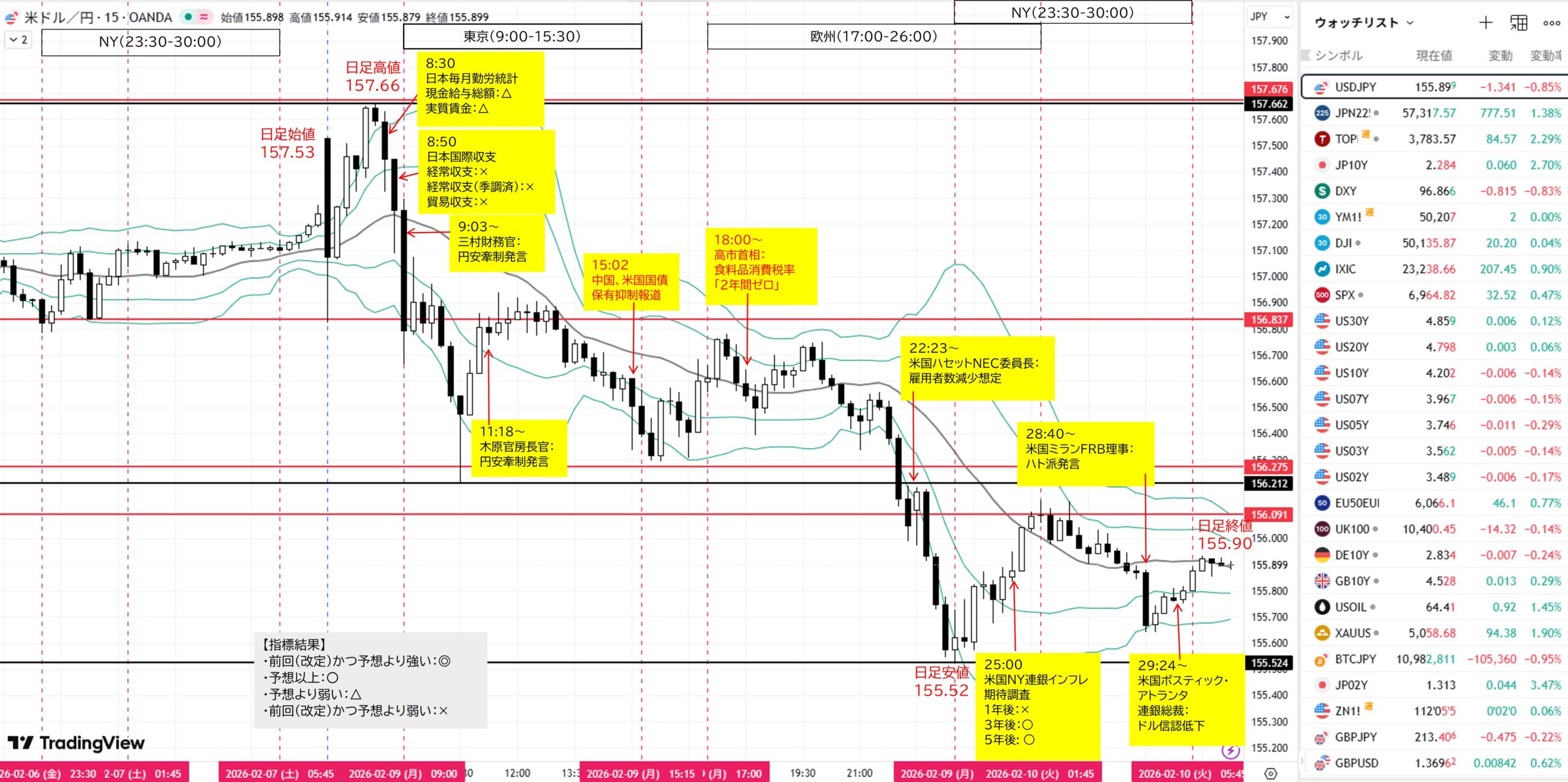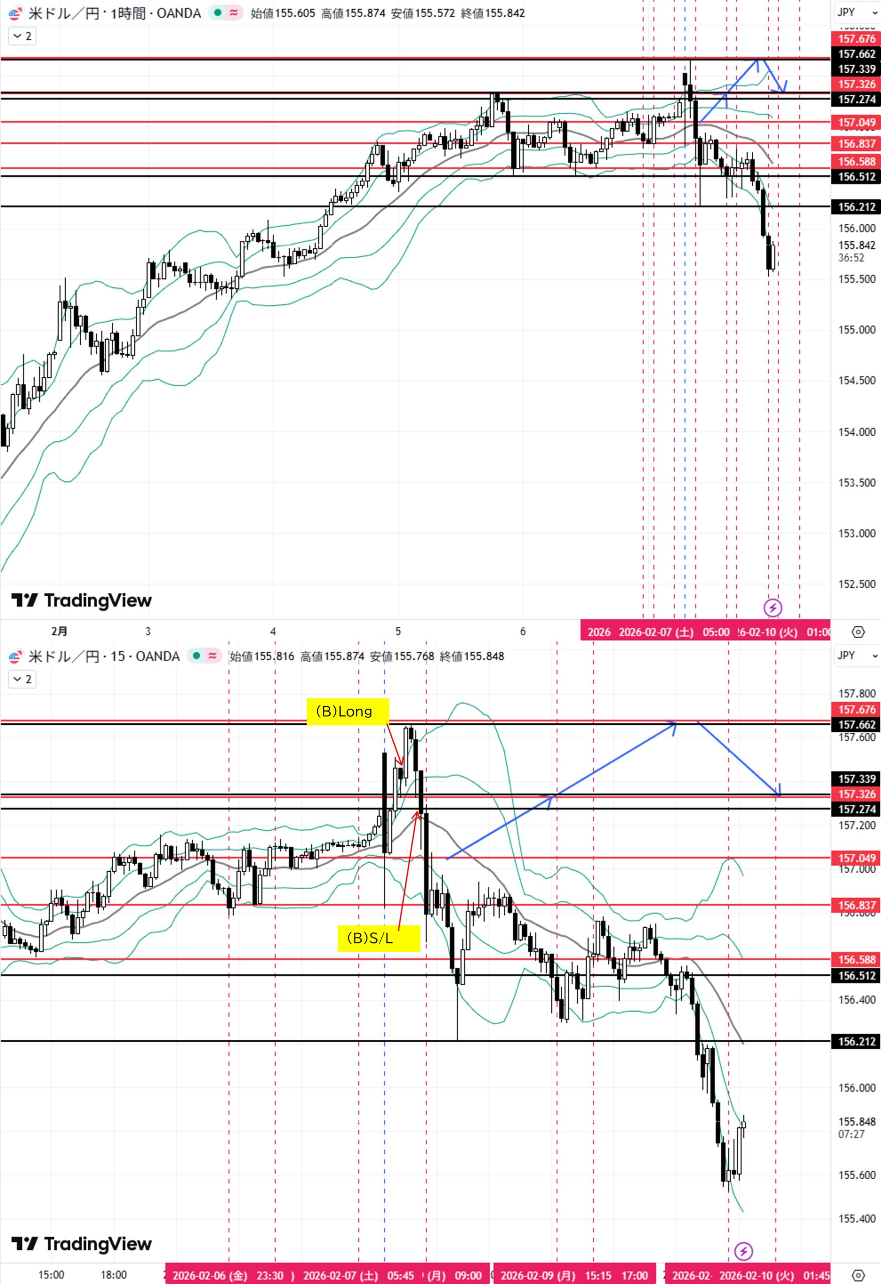(B)1H足レンジ高値157.326をダウ上昇→目標4H足レンジ安値157.676
