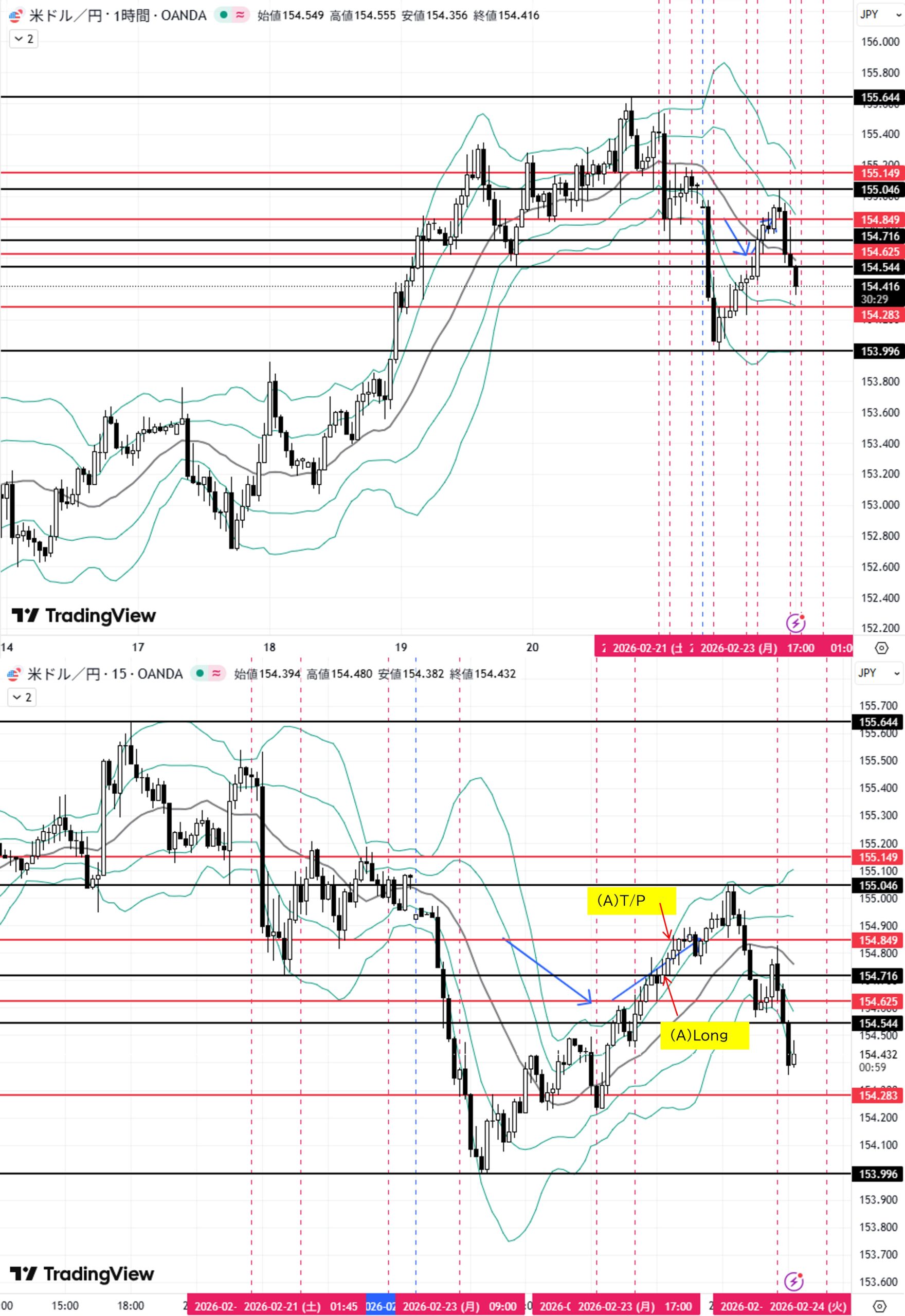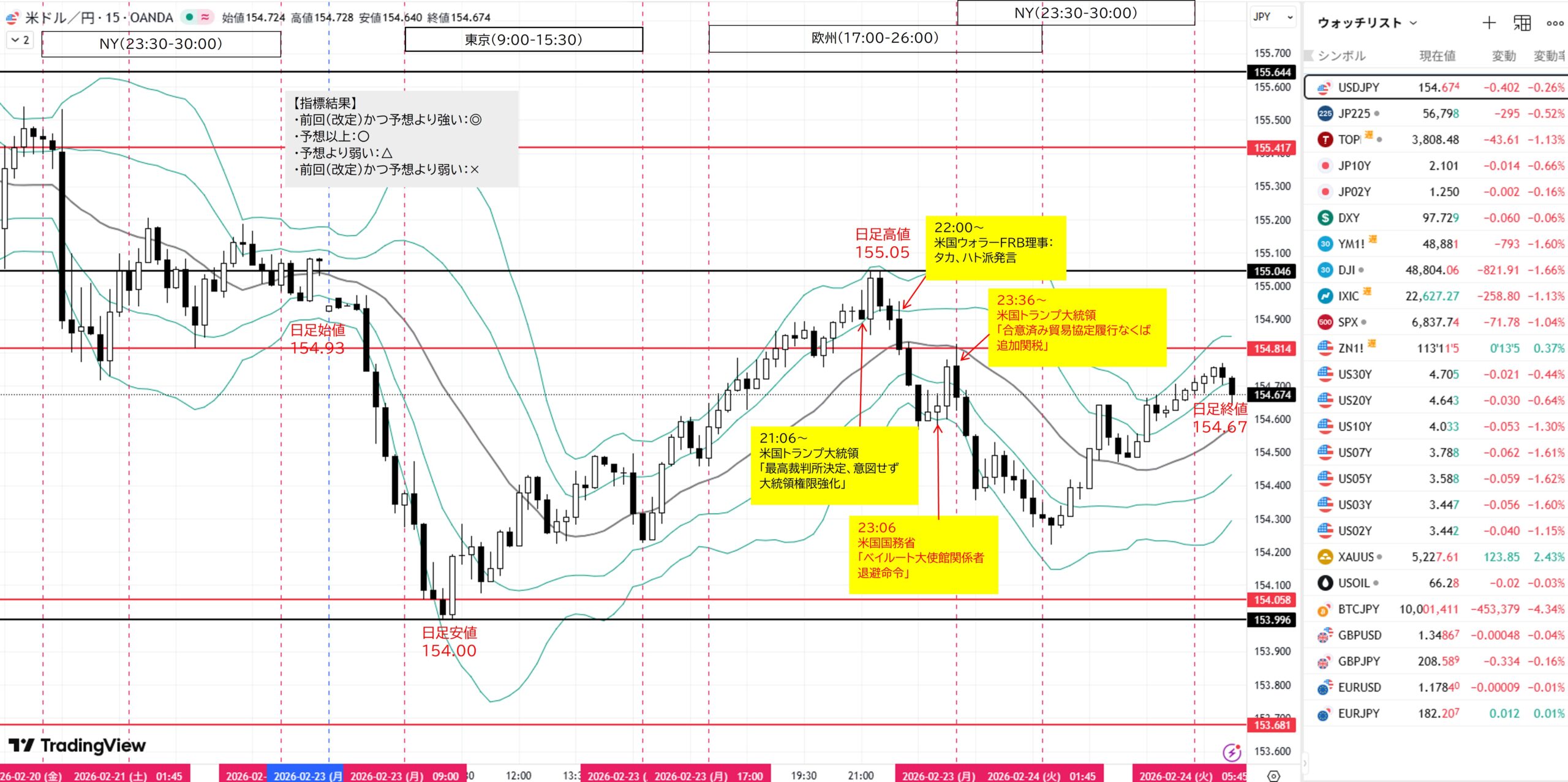 2026年2月23日(月)ドル円戦略と結果