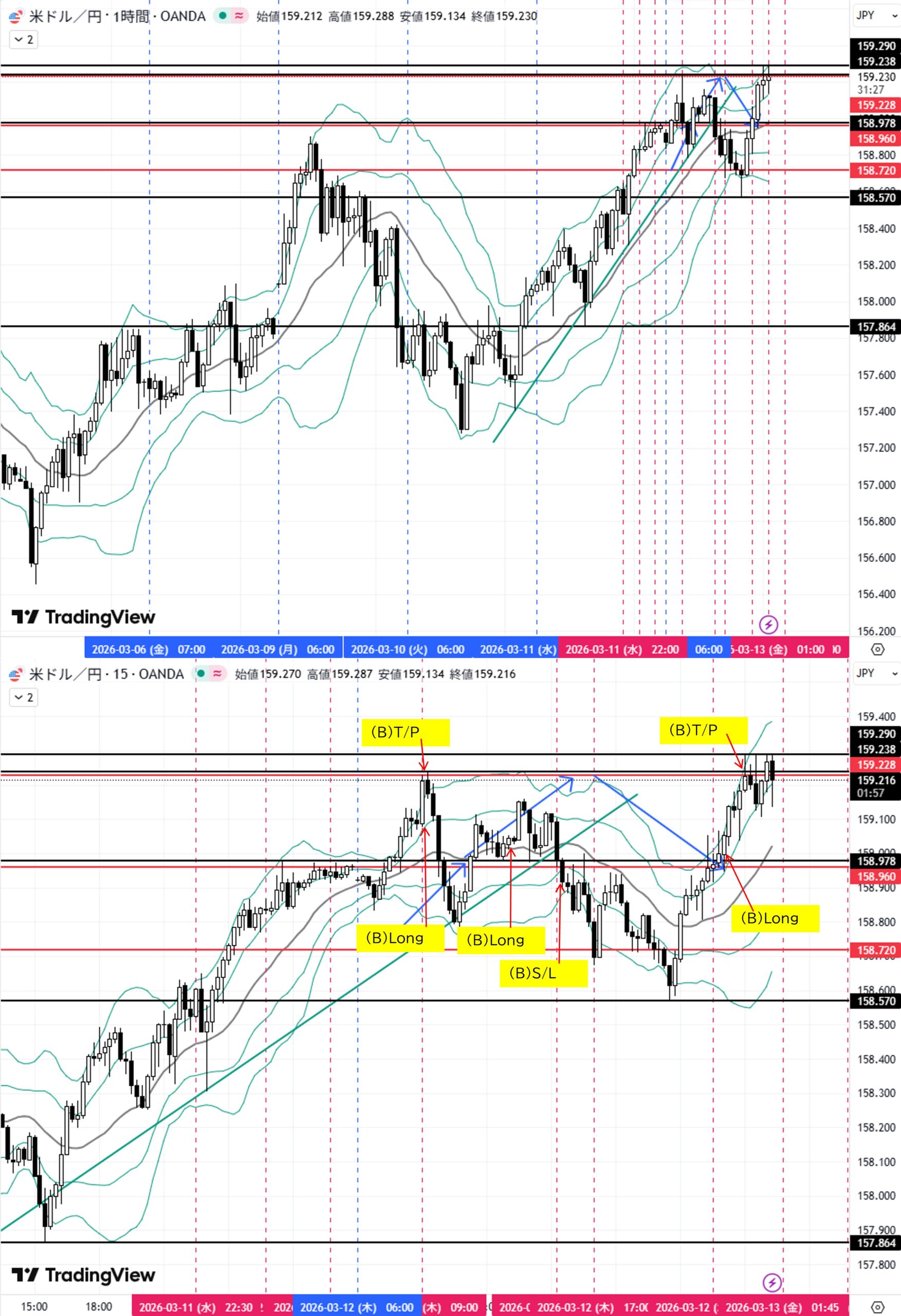 (B)1H足ダウ高値158.960をダウ上昇→目標日足レンジ高値159.228