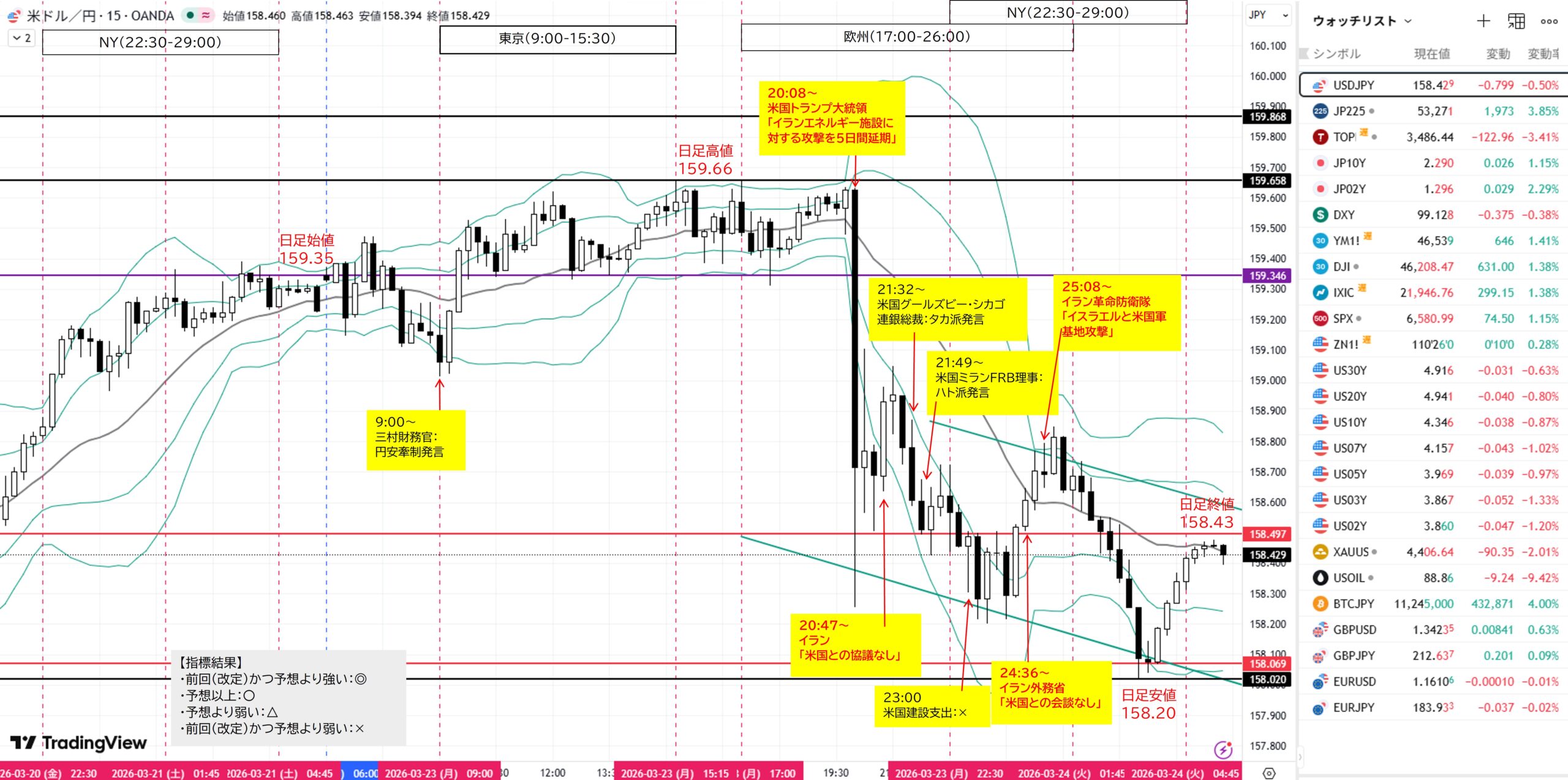 (B)日足高値159.391をダウ上昇→目標1H足戻り高値159.709
