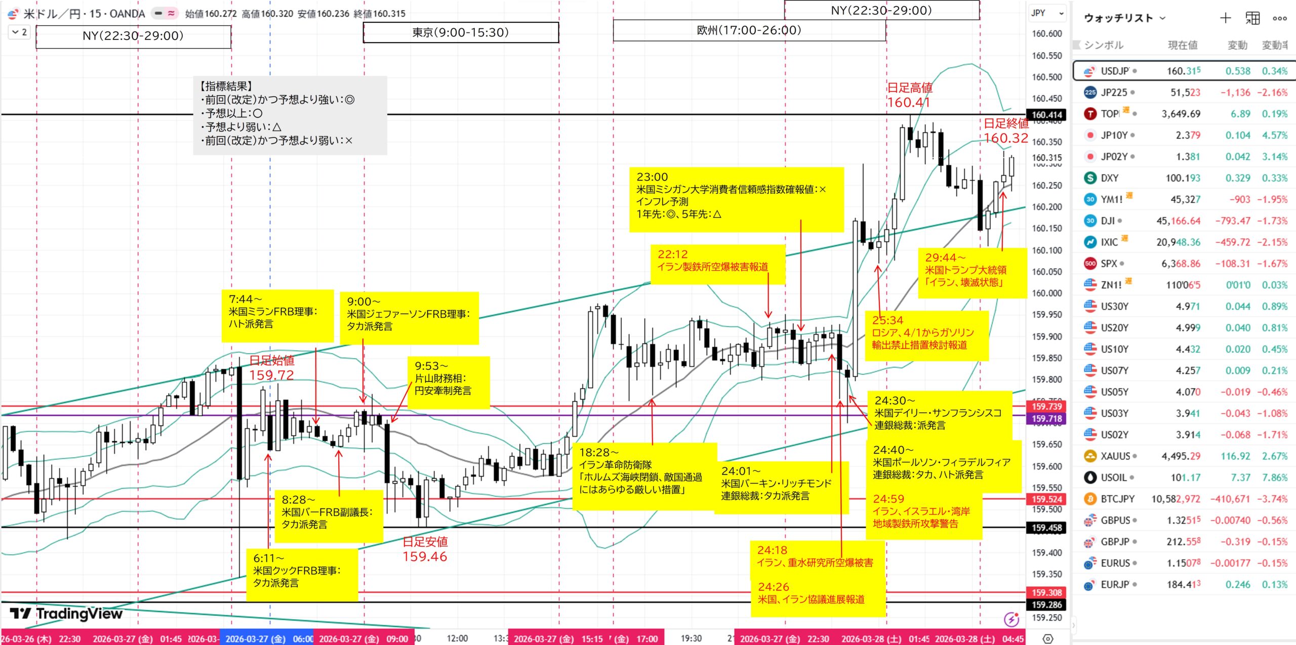 - 日足:3/26陽線。レンジ