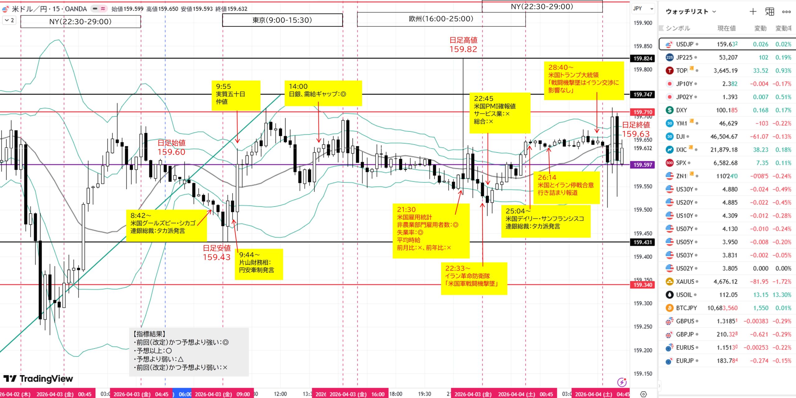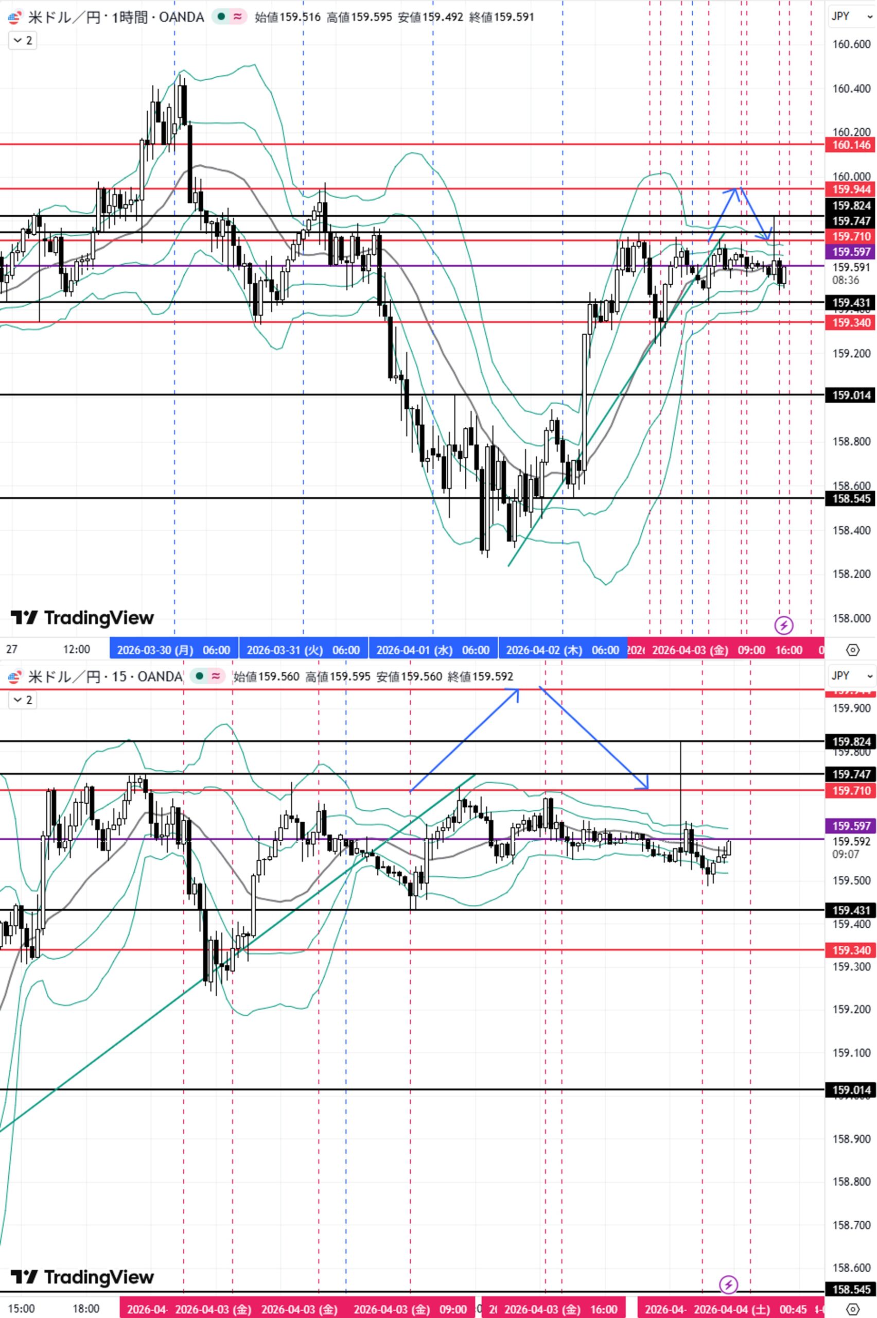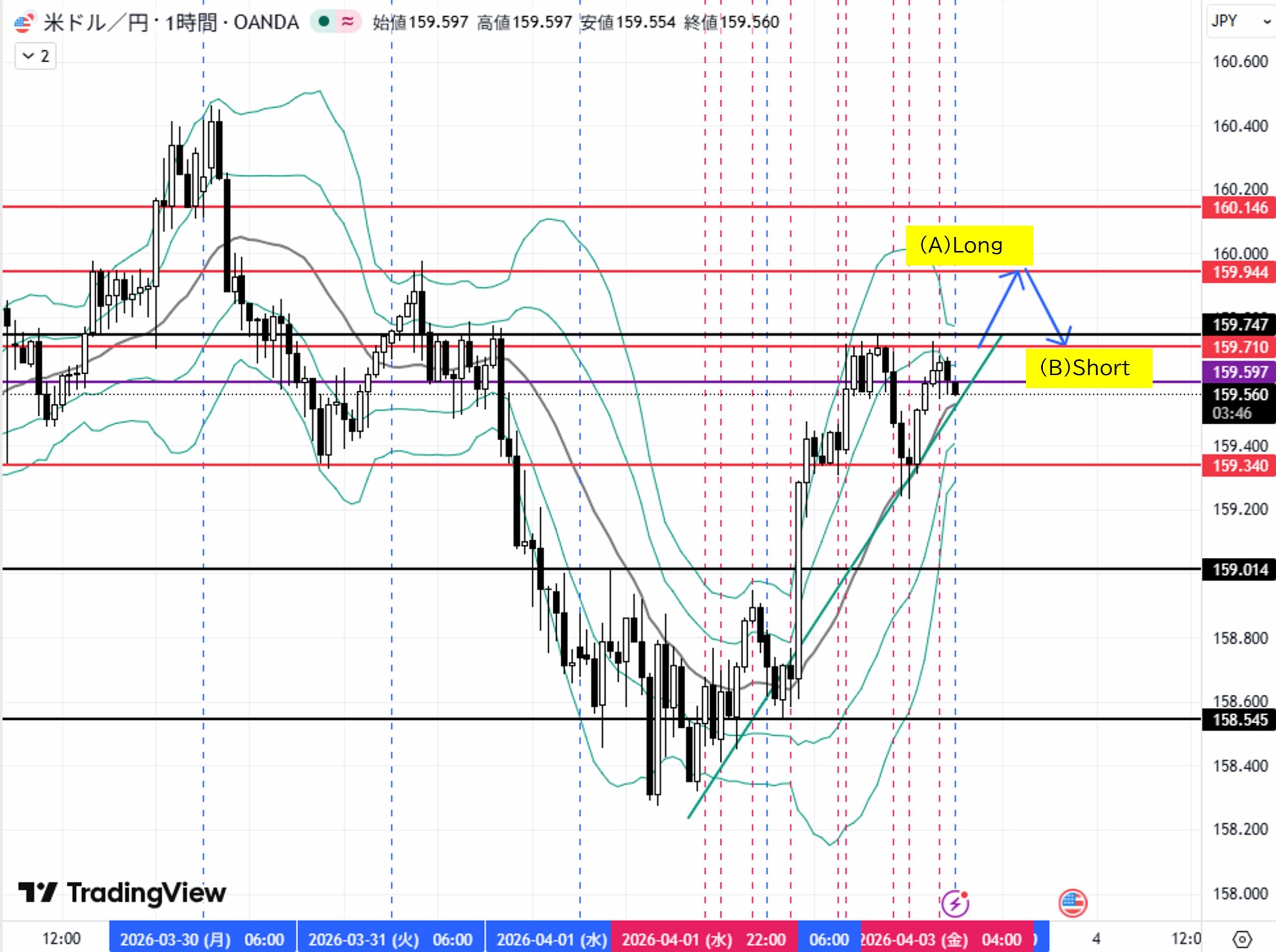 (A)1H足レンジ高値159.710をダウ上昇→目標1H足戻り高値159.944