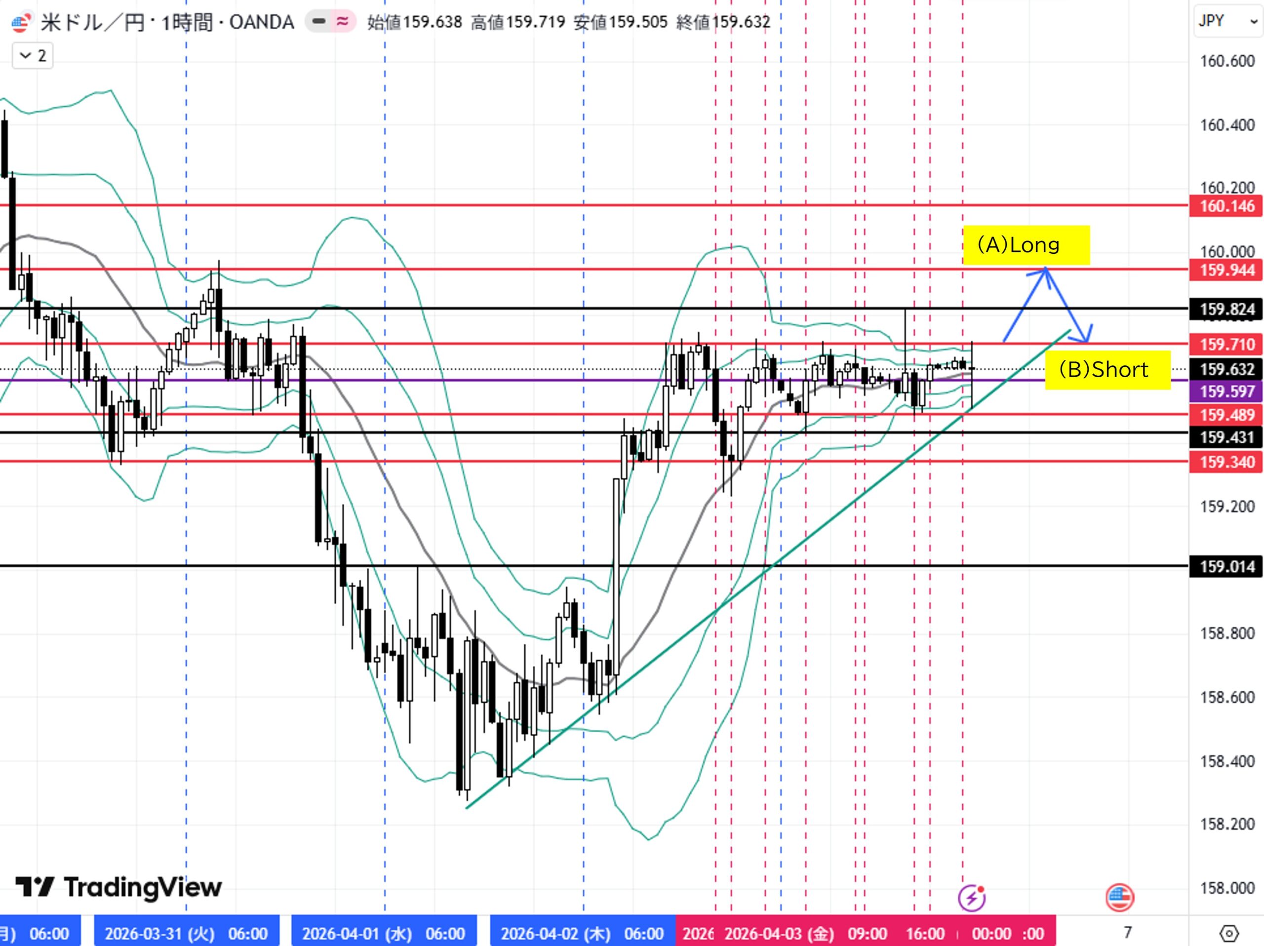 (A)1H足レンジ高値159.710をダウ上昇→目標1H足戻り高値159.944